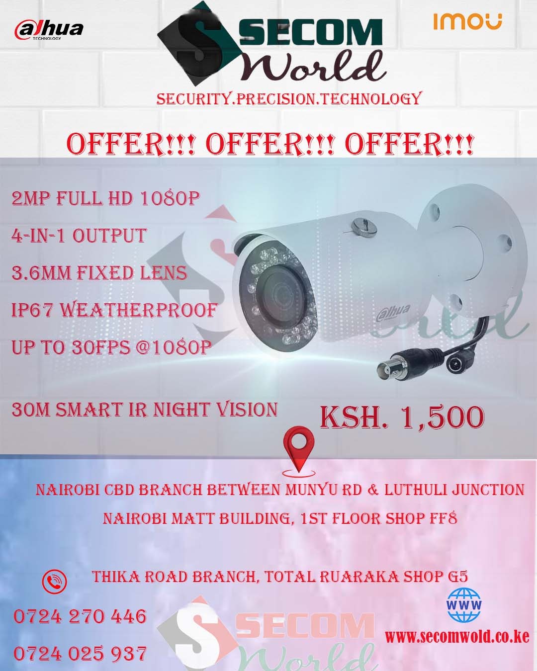 The Dahua DHI‑HAC‑HFW1200S is a high-performance 2 MP Full HD (1080p) bullet CCTV camera designed to provide reliable and clear surveillance for homes, offices, and businesses. Equipped with Smart IR night vision up to 30 meters, it ensures detailed video even in complete darkness, while its HD/SD switchable output (CVI/TVI/AHD/CVBS) makes it compatible with most DVR systems.